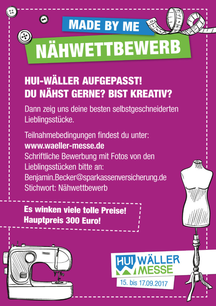 Teilnahmebedingungen Nähwettbewerb Hui Wäller Messe: